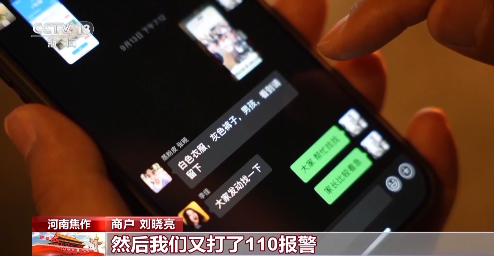 商家刘晓亮:为了防止孩子跑到外面,然后拨打110,我让母亲把孩子的照片拍下来发给我们两个工作组。尤其令我感动的是现场有很多热情的人们。热情的游客拿着手机出来给孩子拍照,纷纷跑来跑去寻找孩子。